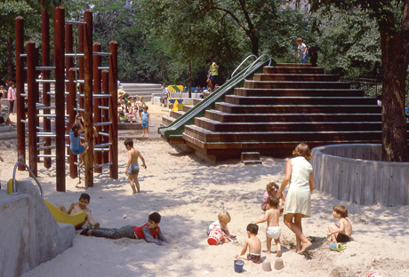 The obvious irony in all this was that this standard-issue trauma did not occur in what the kids in my Upper West Side neighborhood fondly nicknamed “the dangerous playground” just up the hill—the one that called out with its siren song of massive timbered ziggurats and stepped pyramids with wide undulating slides, the vertiginous fire-pole plunging though tiered treehouses, the Indiana Jones-style rope bridge, the zip line, the Brutalist-Aztec watercourses, and tunnel networks. There, I received not so much as a scratch. And there wasn’t just one dangerous playground; these so-called adventure playgrounds were sprouting up everywhere, siphoning off, Pied-Piper-like, any kid with a scrap of derring-do suddenly bored to death with the old playgrounds, places that now had all the grim appeal of a municipal parking lot. (...)